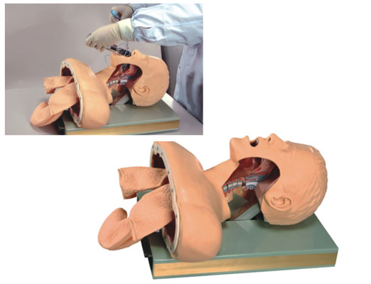 1、標(biāo)準(zhǔn)的人體解剖結(jié)構(gòu)與真實(shí)操作直觀演示相結(jié)合的功能。 2、進(jìn)行口腔、鼻腔氣管插管的訓(xùn)練操作時,正確操作插入氣道,有側(cè)面直觀功能;供氣使肺膨脹,并注入空氣到管子氣囊固定管子。 3、進(jìn)行口腔、鼻腔氣管插管的訓(xùn)練操作時,錯誤操作插入食道,有側(cè)面直觀功能。供氣使胃膨脹。 4、進(jìn)行口腔、鼻腔氣管插管的訓(xùn)練操作時,錯誤操作使喉鏡造成牙齒受壓,有電子報警功能。