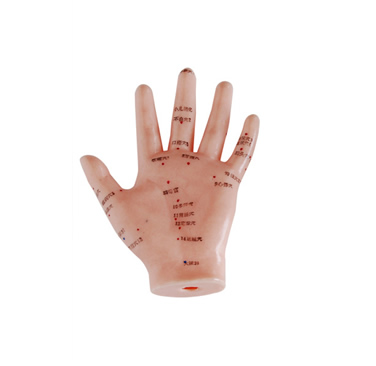 用軟而光亮的PVC制成的大規(guī)格的人手模型,顯示手背上的20個穴位和手心上13個穴位,穴位用漢字或數(shù)字標注。附中英文使用手冊。