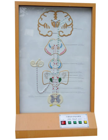 ZH/D22平衡覺傳導(dǎo)電動模型適用于醫(yī)學(xué)院校、衛(wèi)生學(xué)校、醫(yī)院臨床授課時作為直觀教具,平衡覺傳導(dǎo)具體途徑主要通過內(nèi)側(cè)縱束、前庭脊髓束完成眼肌前庭(如眼球震顫)、頭頸姿勢、軀干四肢姿勢的反射性調(diào)節(jié)。 一、顯示內(nèi)容: ■ 內(nèi)側(cè)縱束(MLF): 第一節(jié)神經(jīng)元炎雙極細(xì)胞,其胞體構(gòu)成前庭神經(jīng)節(jié)(位于內(nèi)耳道底)胞體的周圍突組成上下兩支。上支的纖維分成三個終支,分別到達橢圓囊斑、上半規(guī)管的壺腹嵴、外半規(guī)管的壺腹嵴;下支分為兩支,分別到達球囊斑、后半規(guī)管的壺腹嵴。中樞突組成前庭神經(jīng),與蝸神經(jīng)一起組成位聽神經(jīng)入腦橋,止于前庭神經(jīng)核(前庭內(nèi)側(cè)核、外側(cè)核、上核、下核)。前庭神經(jīng)核為第二級神經(jīng)元,由前庭神經(jīng)各核發(fā)出的纖維參與組成內(nèi)側(cè)縱束,內(nèi)側(cè)縱束包含越邊和不越邊的纖維,其中這么多纖維又分為上行支(外支)和下行支(降支),其中上升的纖維止于兩側(cè)的動眼、滑車、展神經(jīng)核,完成眼肌前庭反射(如眼肌震動),下降的纖維至副神經(jīng)脊髓核(位于脊髓上六頸節(jié)前外側(cè)部細(xì)胞)和上部頸髓前角細(xì)胞,完成頭頸姿勢和反射性調(diào)節(jié)。 ■ 前庭脊髓束: 由外側(cè)核發(fā)出的纖維組成前庭脊髓束,在脊髓前索中下行,止于各節(jié)段的前角運動細(xì)胞(終于周側(cè)脊髓板層Ⅶ、Ⅷ,少量纖維止于板層IX,此束可下達骶髓。由于板層Ⅷ細(xì)胞有越邊聯(lián)系,所以刺激一側(cè)前庭外側(cè)核,可引起兩側(cè)肢體運動反應(yīng)),完成軀干、四肢姿勢的反射性調(diào)節(jié)。 二、技術(shù)參數(shù): ■ 尺寸:51×23×86cm ■ 材質(zhì):PVC材料+木框 三、標(biāo)準(zhǔn)配置: ■ ZH/D22平衡覺傳導(dǎo)電動模型:1臺 ■ 電源線:1根 ■ 說明書:1冊 ■ 保修卡合格證:1張