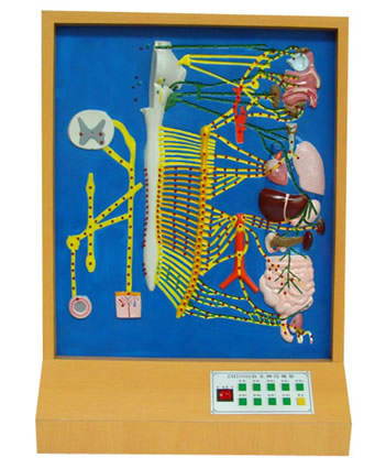 ZH/D12自主神經(jīng)電動(dòng)模型顯示交感神經(jīng)低級(jí)中樞、交感干;交感神經(jīng)節(jié)前和后節(jié)纖維的分布規(guī)律;副交感神經(jīng)低級(jí)中樞的部位;睫狀神經(jīng)節(jié)、翼腭神經(jīng)節(jié)、下頜下神經(jīng)節(jié)、耳神經(jīng)節(jié)等副交感節(jié)前纖維的起始和節(jié)后纖維的分布;盆內(nèi)臟神經(jīng)的分布情況,控制面板上獨(dú)立的按鈕。 一、顯示內(nèi)容: 左邊簡(jiǎn)要顯示交感神經(jīng)與脊神經(jīng)的關(guān)系及交感神經(jīng)結(jié)前纖維發(fā)出的部位及其三種方向,右邊是主體部分,清晰顯示模型的交感神經(jīng)秘副交感神經(jīng)的結(jié)構(gòu)特點(diǎn)用其分布。 ■ 演示副交感神經(jīng)的低級(jí)中樞(即腦骶部): 1、腦干四對(duì)副交感神經(jīng)核(又稱結(jié)前神經(jīng)元)自上而下,為動(dòng)眼神經(jīng)副核、上泌涎核、下泌涎核、迷走神經(jīng)背核(可分別閃亮)。 ①、動(dòng)眼神經(jīng)副核發(fā)出結(jié)前纖維,隨動(dòng)眼神經(jīng),其中副交感神經(jīng)纖維進(jìn)入睫狀神經(jīng)(副交感神經(jīng)結(jié))結(jié)后纖維分布二睫狀肌和瞳孔括約肌。 ②、上泌涎核發(fā)生結(jié)前纖維,隨面神經(jīng),其中副交感神經(jīng)纖維至翼腭神經(jīng)結(jié)(副交感神經(jīng)結(jié)),結(jié)后纖維支配淚腺、鼻腔口腔粘膜的腺體。另一部分結(jié)前纖維至下頜下神經(jīng)結(jié)(副交感神經(jīng)結(jié))結(jié)后纖維公布二下頜下腺和舌下腺。 ③、下泌涎核發(fā)出結(jié)前纖維隨舌咽神經(jīng)其中的副交感纖維至耳神經(jīng)結(jié)(副交神經(jīng)結(jié))結(jié)后纖維分布于腮腺。 ④、迷走神經(jīng)背核發(fā)出臺(tái)前纖維,隨迷走神經(jīng)至胸腹腔器壁內(nèi)或附近至副交感神經(jīng)結(jié),結(jié)后纖維分布于相應(yīng)的器官。 2、骶部副交感:脊髓骶部第2-4節(jié)的副交感神經(jīng)核發(fā)出結(jié)前纖維骶神經(jīng)分出副交感神經(jīng)纖維加入盆從,隨盆叢至臟器附近或臟器壁內(nèi)副交神經(jīng)結(jié),結(jié)后纖維分布于結(jié)腸左曲以下的消化管、盆腔臟器及外陰器。 ■ 演示交感神經(jīng)低級(jí)中樞(即胸腰部): 1、白交通支入交感干后有三種去向: ①、進(jìn)入交感干后,終于相應(yīng)節(jié)段的交感神經(jīng)結(jié)。 ②、進(jìn)入交感干后往上行、或向下行,并終止于上方或下方的神經(jīng)結(jié)。 ③、進(jìn)入交感干后,不換神經(jīng)元既穿出交感干終止于椎前神經(jīng)結(jié)(椎前神經(jīng)結(jié)有腸系膜上神經(jīng)結(jié)、腸系膜下神經(jīng)結(jié)、腹腔神經(jīng)結(jié)、主動(dòng)脈肥膩神經(jīng)結(jié))。 上述白交通結(jié)前纖維入交感干后的三種去向均可發(fā)光顯示。 2、交感神經(jīng)結(jié)發(fā)出的結(jié)后纖維有三種去向: ①經(jīng)灰交通支(結(jié)后纖維返回脊神經(jīng)分布于軀干四肢的血管、汗腺和豎毛。31對(duì)脊神經(jīng)均有灰交通聯(lián)系)。 ②隨動(dòng)脈行走,在動(dòng)脈外膜處形成神經(jīng)叢,并隨動(dòng)脈分布至所支配的器官。 ③示交感神經(jīng)結(jié)的結(jié)后纖維直接支配到所支配的器官。 二、技術(shù)參數(shù): ■ 尺寸:60×24×85cm ■ 材質(zhì):PVC材料 三、標(biāo)準(zhǔn)配置: ■ ZH/D12自主神經(jīng)電動(dòng)模型:1臺(tái) ■ 電源線:1根 ■ 說明書:1冊(cè) ■ 保修卡合格證:1張