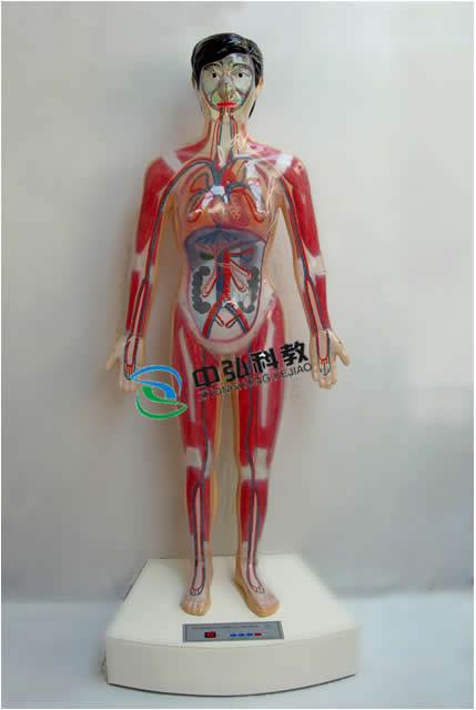 ZH/D09微電腦人體心動周期與大、小循環(huán)演示儀模型(170cm)為成人女性,材質(zhì)后部采用增強(qiáng)塑料,前部為PVC塑料,動靜脈采用紅、藍(lán)發(fā)光二極管,底座后方有220V電源插座,前上方有全身血液循環(huán)、體循環(huán)、肺循環(huán)、復(fù)位四個演示按鈕。 一、顯示內(nèi)容: ■ 全身血液循環(huán):血液由左心室流向升主動脈→主動脈弓→降主動脈→主動脈胸段→主動脈腹段→在通過主動脈各段時沿途分布于頭頸部、胸、腹、盆腔部、上肢部、下肢部→通過各節(jié)靜脈→匯合至上、下腔靜脈→右心房→右心室→肺動脈→氣體交換由肺靜脈→左心房→最后到左心室,以上過程結(jié)束后會自動重復(fù)演示,直到按復(fù)位鍵結(jié)束。 ■ 體循環(huán):按此鍵后,模型上即出現(xiàn)全身血液循環(huán)中除肺循環(huán)以外的循環(huán)流動過程。 ■ 肺循環(huán):按此鍵后,模型上即出現(xiàn)全身血液循環(huán)中除體循環(huán)以外的循環(huán)流動過程。 二、技術(shù)參數(shù): ■ 尺寸:高170cm ■ 材質(zhì):PVC材料+木框 三、標(biāo)準(zhǔn)配置: ■ZH/D09微電腦人體心動周期與大、小循環(huán)演示儀模型:1臺 ■ 電源線:1根 ■ 說明書:1冊 ■ 保修卡合格證:1張