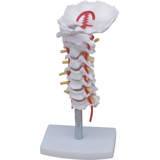 本模型由后枕骨和7節(jié)頸椎及椎間盤與神經(jīng)組成,帶頸椎動脈,有底座。