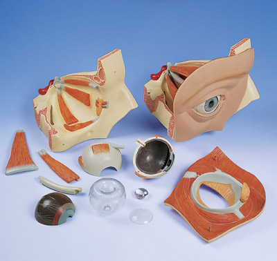 這款模型展示了眼和視神經(jīng)在眼窩(底和中壁)里的位置。此外,還表現(xiàn)了眼、骨、肌肉和眼外部結(jié)構(gòu)的關(guān)系。可分解為: