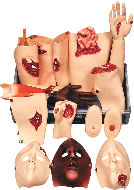 1、面部燒傷ⅠⅡⅢ度2、前額撕裂傷口3、頜前創(chuàng)傷口4、鎖骨開放性骨折與胸膛挫傷5、腹部創(chuàng)傷伴有小腸突露6、右上臂肱骨開放性骨折7、右手開放性骨折、軟組織撕裂傷口、骨組織暴露8、右手掌槍彈傷口9、右大腿股骨開放性骨折10、右大腿復合形股骨骨折11、右大腿金屬異物刺傷12、右小腿脛骨開放性骨折13、右足開放性骨折右小指截斷創(chuàng)傷14、左前臂燒傷ⅠⅡⅢ度15、 左大腿截斷創(chuàng)傷