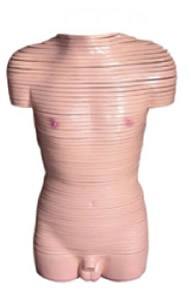 男性軀干橫斷斷層解剖模型顯示男性水平斷面解剖結構和形態(tài),將人體從頸部到盆部整個軀干分解成63片典型部分的結構,由頸根部至坐骨結節(jié)作厚約1cm橫切片。尺寸:自然大,42×20×60cm材質:玻璃鋼材料